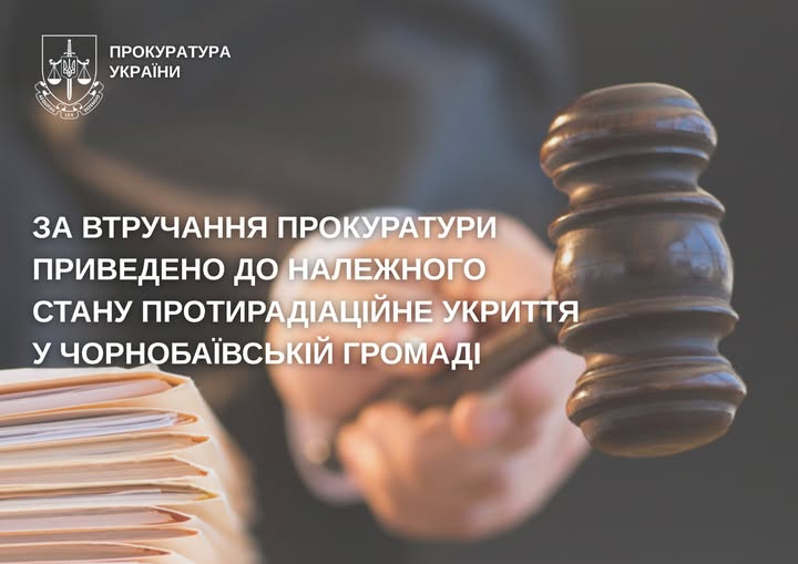Завдяки втручанню Золотоніської окружної прокуратури приведено до належного технічного стану протирадіаційне укриття, розташоване на території Чорнобаївської громади.