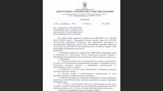 Відповідні дозволи надав департамент архітектури та містобудування Черкаської міської ради, пише Вікка.