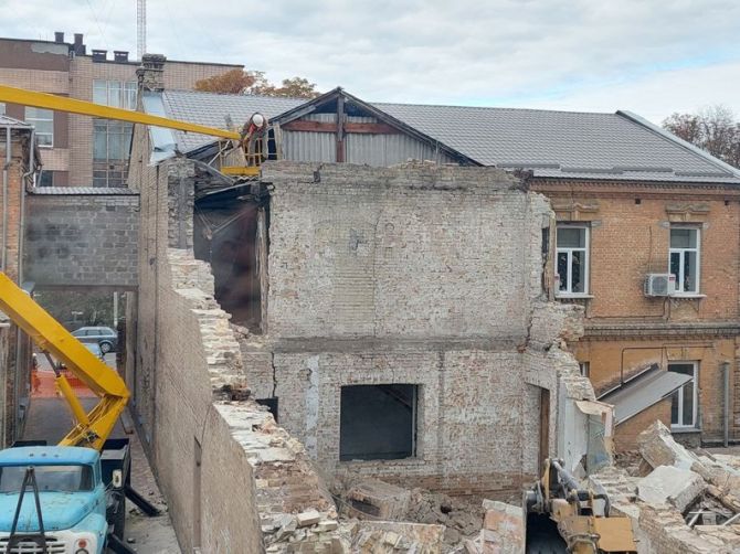 Цей корпус музичної школи відновленню не підлягав, тож іншого варіанту ніж його знести не було — не на камеру розповів представник підрядної організації. За його словами, під час демонтажу зберігають фасадну цеглу аби під час будівництва нового корпусу зберегти первинний вигляд будівлі.