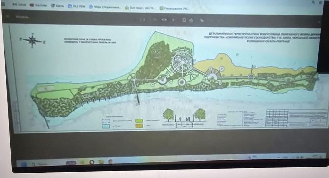 В ході громадських слухань, на яких були присутні лише три депутати Смілянської міської ради, опис проєкта озвучив головний архітектор міста Сергій Браунер. Він розповів, що ще під час проведення робіт з очищення водосховища річки Тясмин у 1990-х роках утворився новий острів (мікрорайон Загребля). Наразі ця територія не забудована, поступово заростає чагарниками та деревами. З метою ефективного використання цієї території в майбутньому було запропоновано розробити детальний план території (ДПТ), який передбачає можливість створення тут зони рекреації.