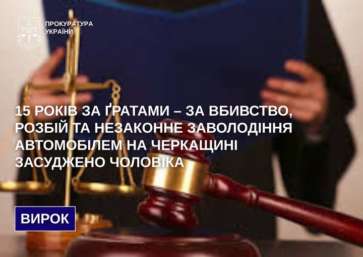 За публічного обвинувачення прокурорів Черкаської обласної прокуратури мешканця Золотоніського району визнано винним у вчиненні умисного вбивства з корисливих мотивів, розбійного нападу та незаконного заволодіння транспортним засобом (п. 6 ч. 2 ст. 115, ч. 4 ст. 187, ч. 3 ст. 289 КК України).