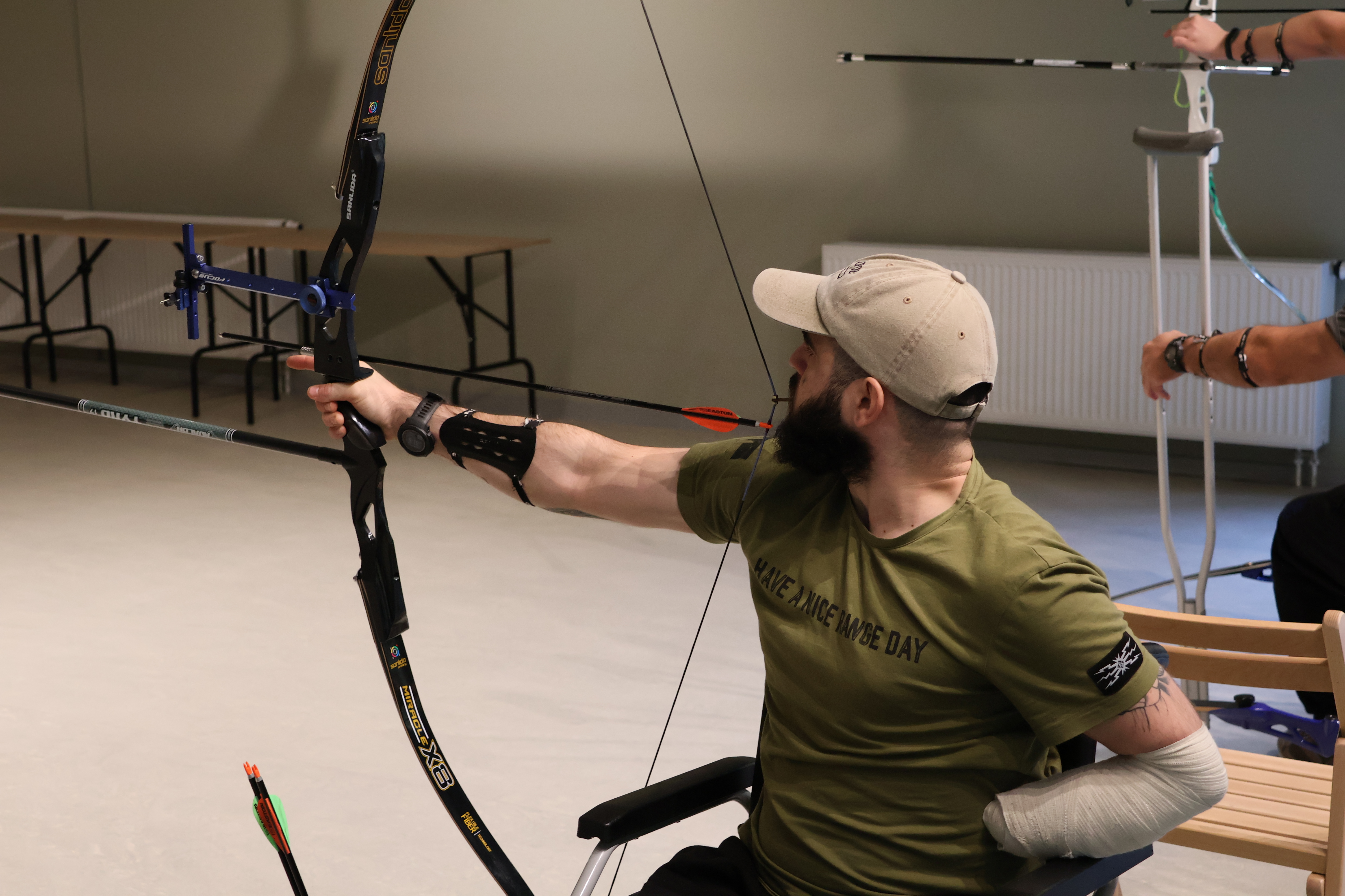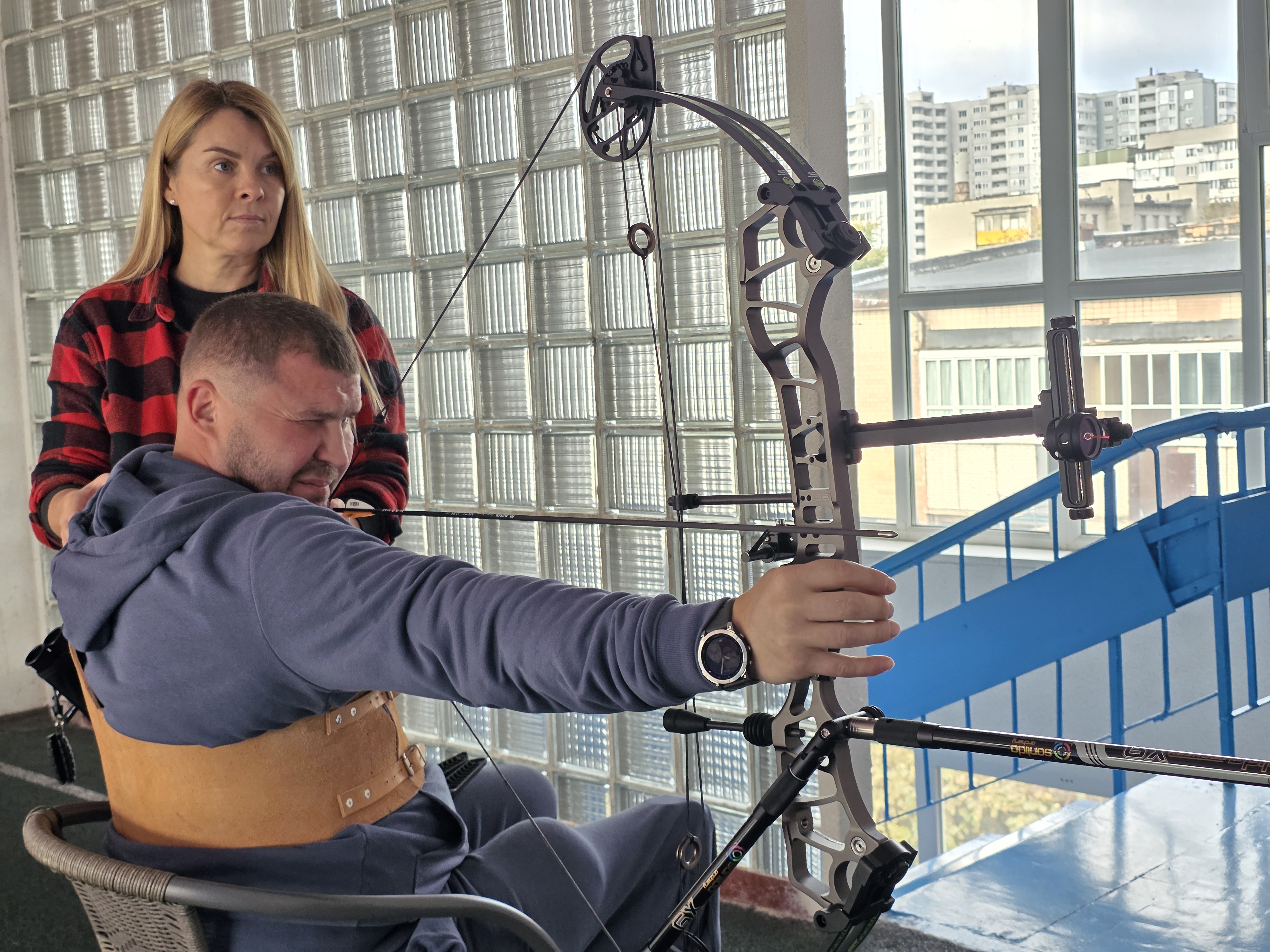Місце для занять лучників у літню пору року є. А от взимку виникають проблеми з пошуком приміщення. Тож, наприклад, Вадим Мазніченко, ветеран з ампутацією ноги та руки, щоразу долає сходи, аби скласти свій лук в одному з спорткомплексів і розпочати заняття. До нього приєднується Іван, поранений у 2023 році, якому під час стрільби допомагає дружина. У залі панує тиша, яку прорізає лише свист стріли. Досвідчений спортсмен Мазніченко знає, що навіть вологість повітря впливає на точність пострілу. Ветерани не здаються, мріючи про власне невелике стрільбище, щоб мати свій простір для тренувань.