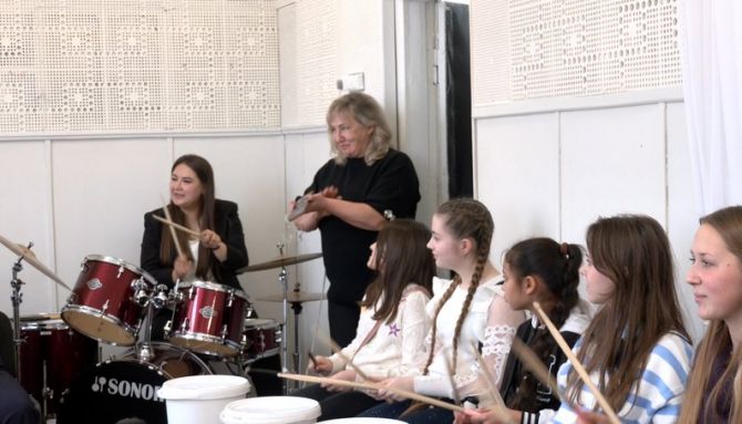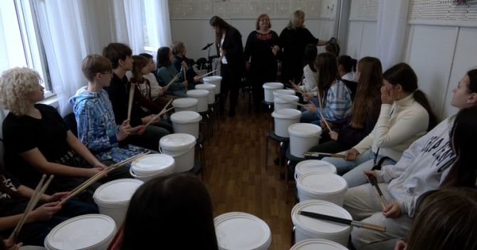 Учениця Харківської музичної школи Аміна Маметова вперше спробувала грати на барабані. Пояснила, що окрім нового досвіду отримала можливість знову відвідати очні заняття.