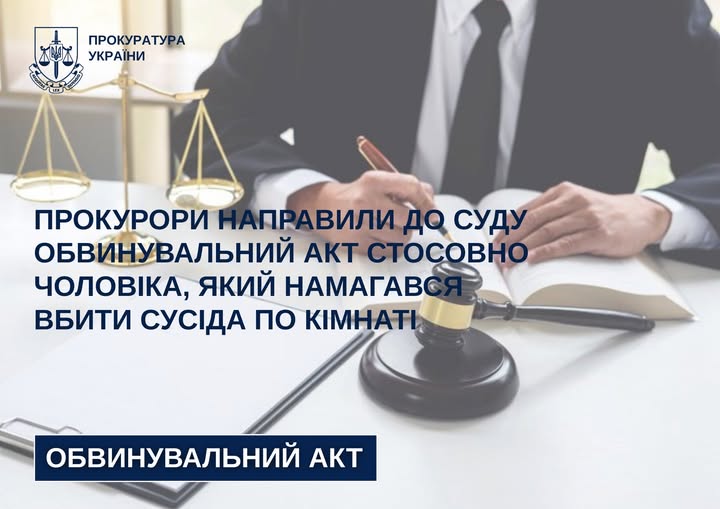 Уманською окружною прокуратурою скеровано до суду обвинувальний акт за фактом замаху на вбивство (ч. 2 ст. 15, ч. 1 ст. 115 КК України).