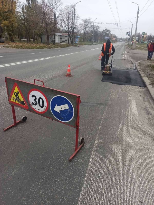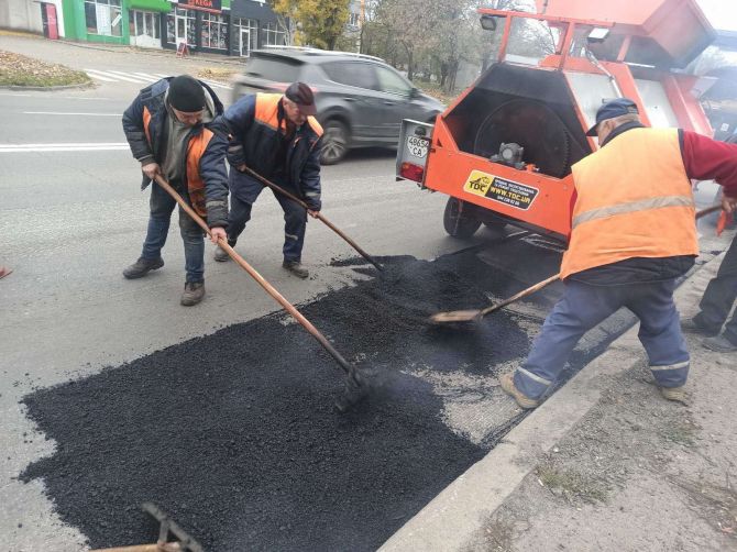 7 листопада у Черкасах по вулиці Чигиринській комунальники продовжили виконання робіт із ліквідації ямковості асфальтобетонною сумішшю, виготовленою в рециклері.