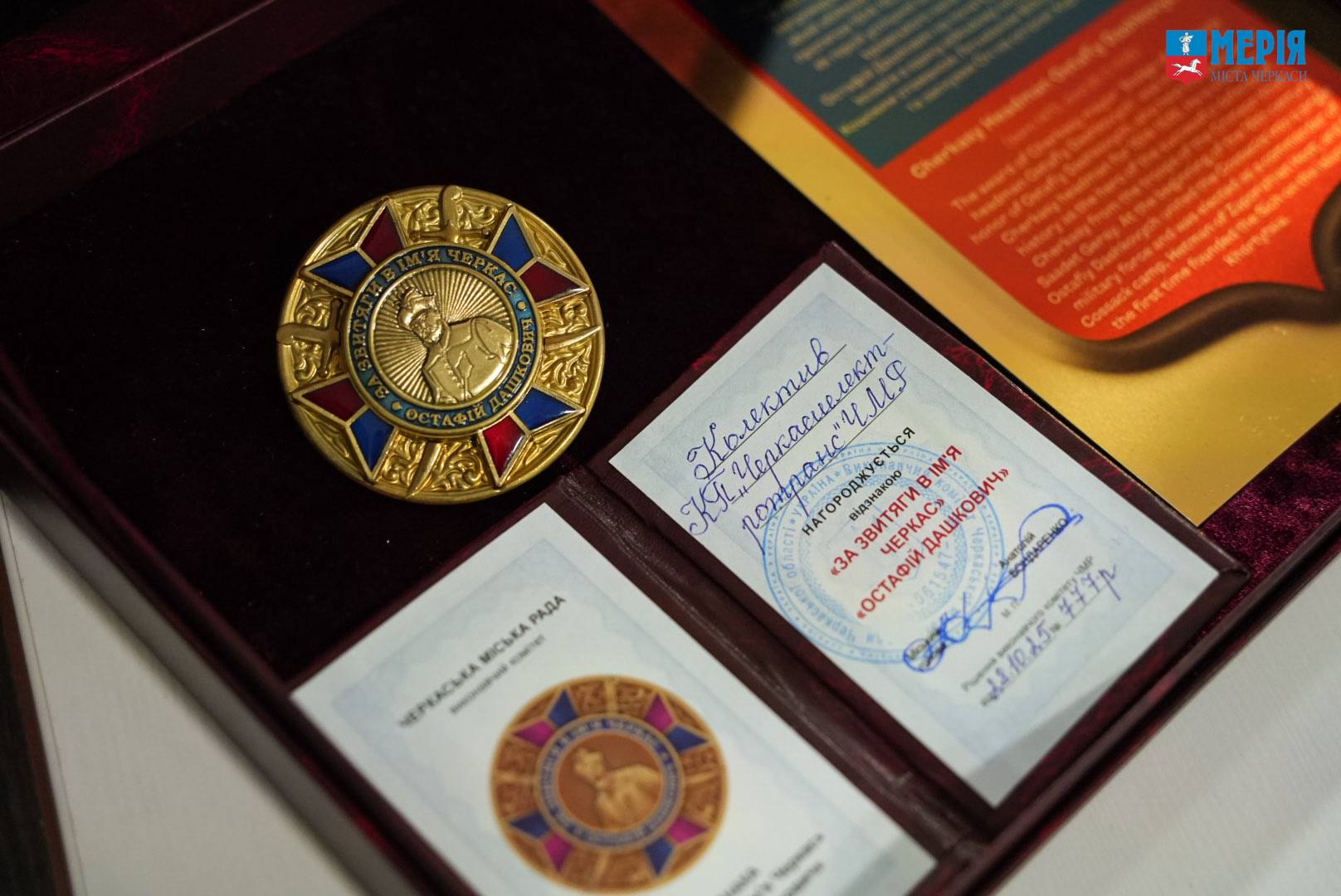 За вагомий внесок у розвиток міського транспорту, сумлінну працю та відданість справі колектив КП «Черкасиелектротранс» в особі директора Бориса Марченка нагороджено пам’ятною відзнакою «За звитяги в ім’я Черкас. Остафій Дашкович» І ступеня.