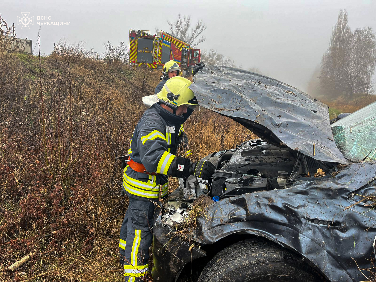 У Черкаському районі на автодорозі «Київ-Знам'янка», поблизу села Ребедайлівка внаслідок дорожньо-транспортної пригоди травмовані 2 людей. Рятувальники, окрім відключення акумуляторної батареї автомобіля, надали допомогу у транспортуванні постраждалих до автомобіля екстреної швидкої допомоги.