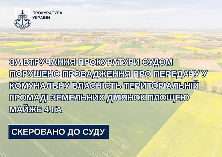 Прокурори встановили, що на території однієї з громад району залишаються дві земельні ділянки загальною площею близько 4 гектарів вартістю понад 120 тисяч гривень, власники яких померли понад 20 років тому, а спадщину після них ніхто не прийняв.
