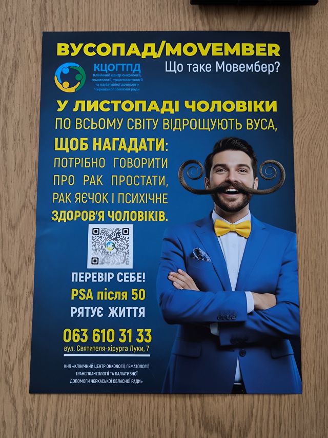 Черкаський онкоцентр 22 листопада запрошує чоловіків на День відкритих дверей у межах всесвітньої ініціативи «Вусопад». Лікарі-урологи, нефрологи та спеціалісти з трансплантації нирки проведуть безкоштовні консультації та обстеження.