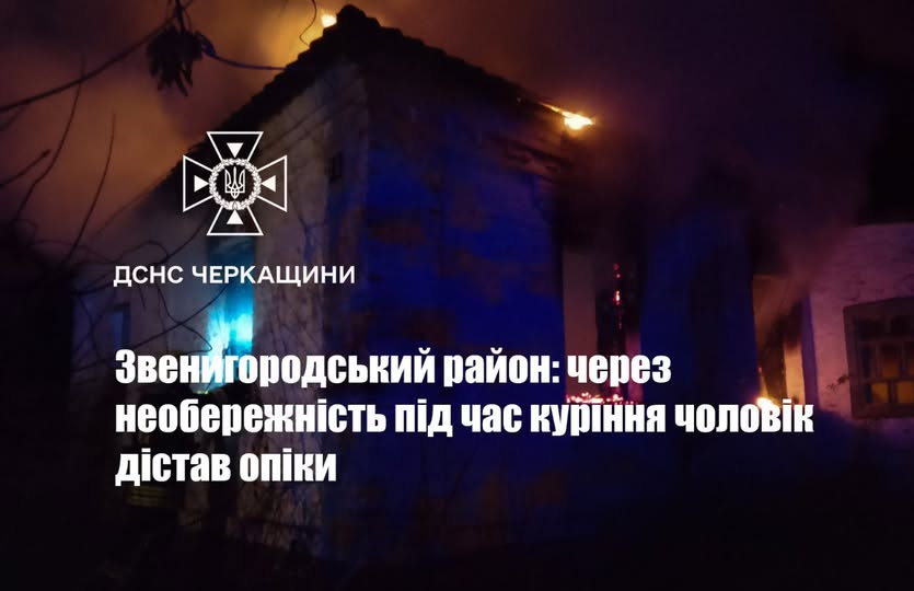 Рятувальники ліквідували загоряння на площі 63 квадратні метри. Під час пожежі чоловік отримав опіки правої ноги ІІ ступеня.