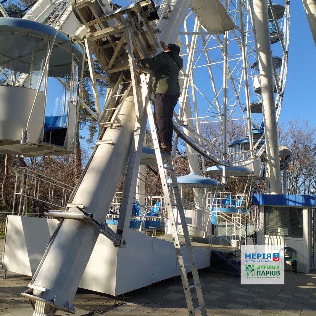 У Сосновому бору здійснювали поточну профілактику та ремонти паркових атракціонів, зокрема, колеса огляду та каруселі.