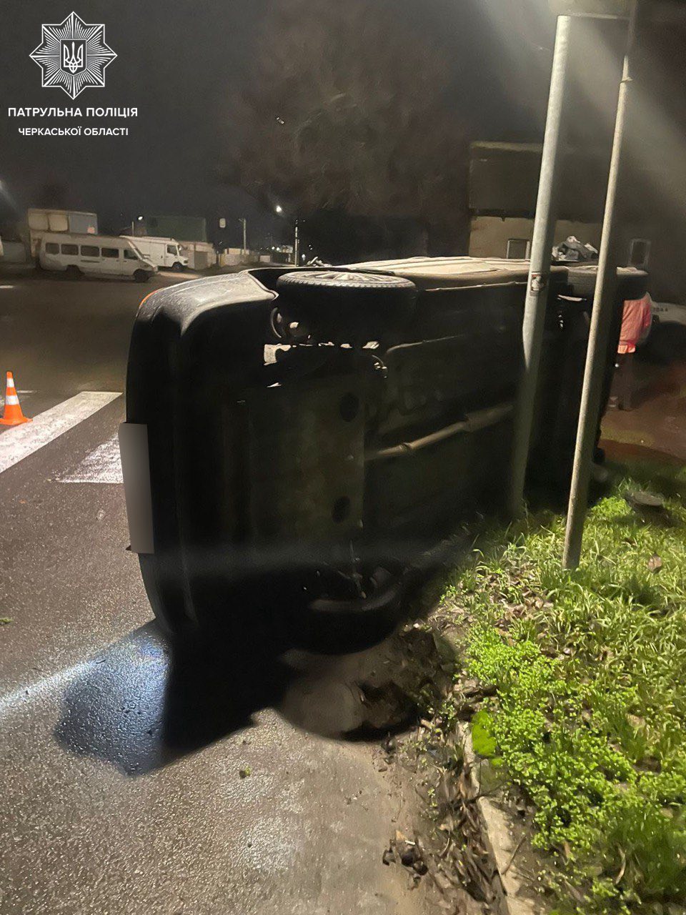 Як повідомляє патрульна поліція Черкаської області, водій, керуючи автомобілем ВАЗ 211540 не обрав безпечної швидкості руху та не дотримався безпечного інтервалу, унаслідок чого втратив керування і здійснив наїзд на бордюр. Після цього автомобіль перекинувся, здійснивши наїзд на електроопору вулично-шляхової мережі.