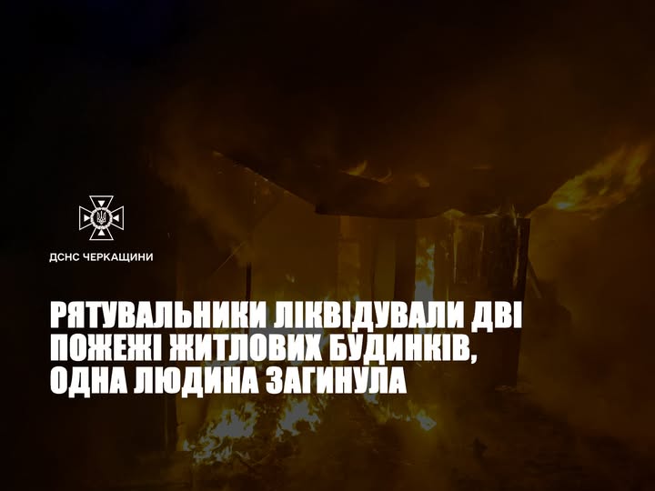 Перший випадок стався у приватному домоволодінні міста Черкаси. Загорання ліквідували вогнеборці 3-ї державної пожежно-рятувальної частини. Під час проведення розвідки у будинку виявлено тіло господарки.