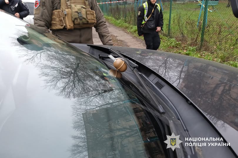 Сьогодні, 8 грудня, у Черкасах на вулиці Привокзальній власник автомобіля Mazda СХ-5 виявив на склоочиснику своєї машини предмет, схожий на гранату.