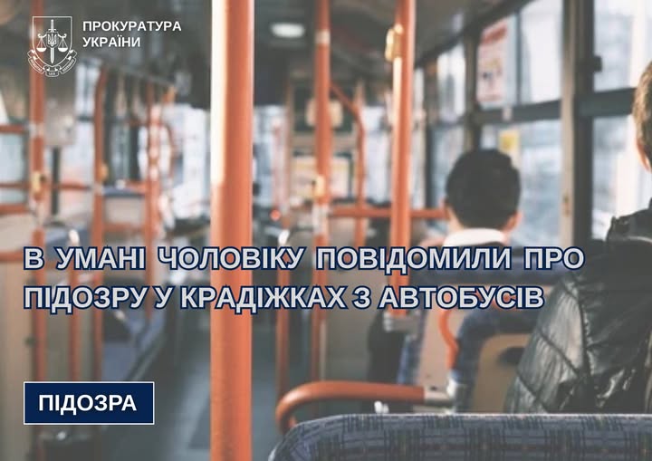 Ювенальні прокурори Уманської окружної прокуратури повідомили про підозру 39-річному жителю Умані. Його підозрюють у крадіжках, скоєних під час воєнного стану (ч. 4 ст. 185 КК України).