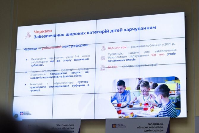 Черкаський міський голова представив практичний кейс міста як приклад раннього, системного та ефективного впровадження реформи шкільного харчування. Зокрема, йшлося про розроблення та впровадження єдиного чотиритижневого сезонного меню з можливістю вибору страв, забезпечення харчування дітей на 100% відповідно до встановлених норм, раціональне використання бюджетних коштів, а також модернізацію шкільних їдалень.