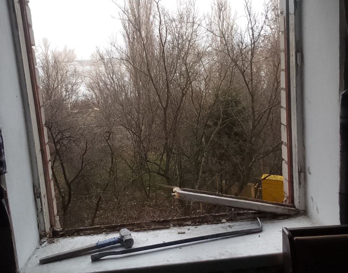 У Каневі встановлюють вікна у двох будинках, які постраждали від ворожих обстрілів.