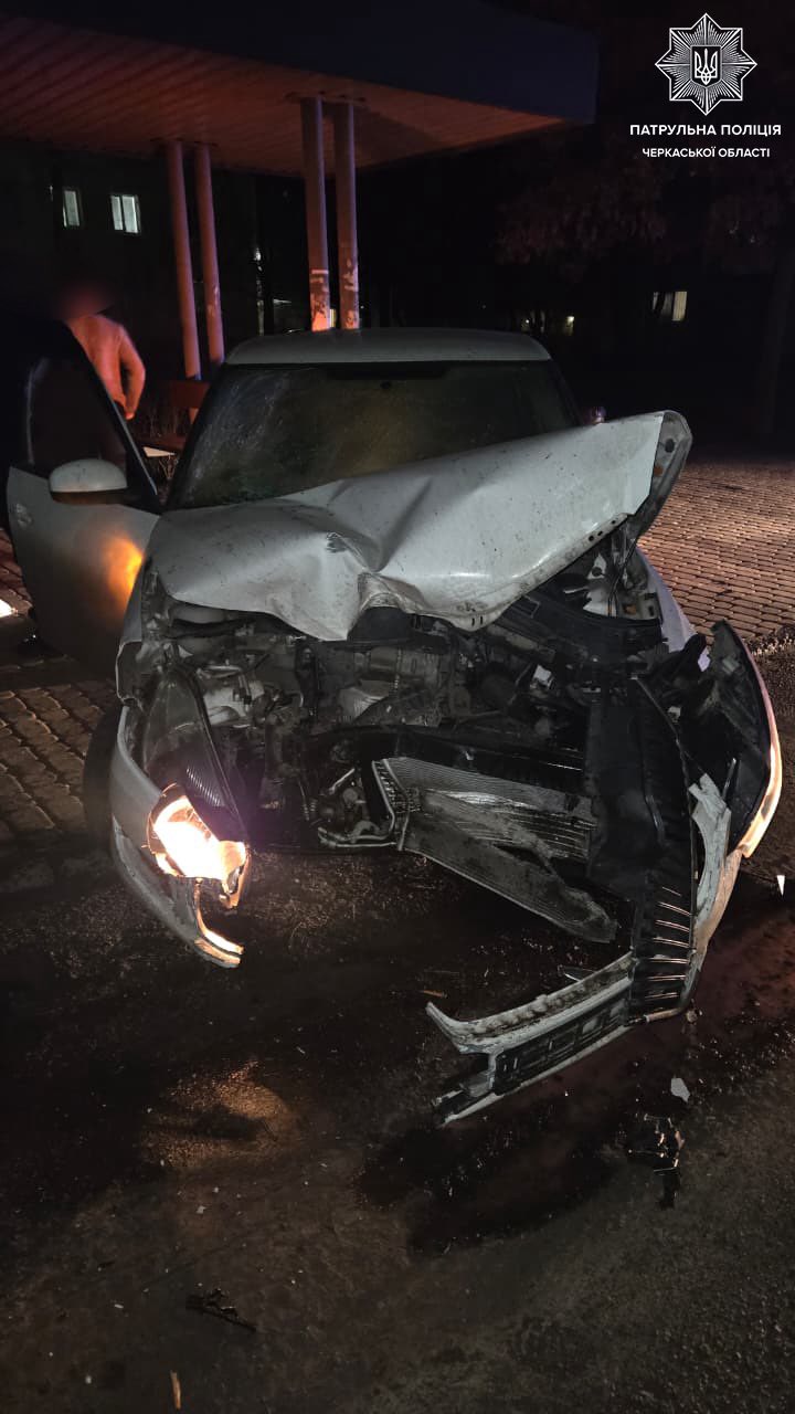 Як повідомляє патрульна поліція Черкаської області, водій автомобіля Skoda Fabia не дотримався безпечної швидкості руху, не впорався з керуванням та здійснив наїзд на зупинку громадського транспорту.