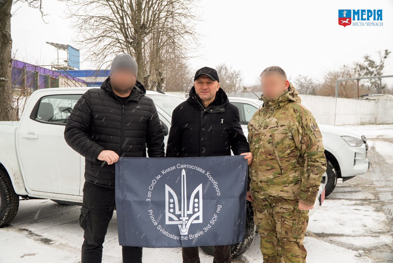 Черкаський міський голова Анатолій Бондаренко передав ключі від двох позашляховиків для потреб українських захисників.
