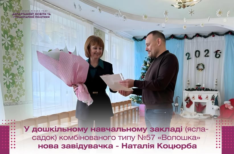Директор департаменту освіти та гуманітарної політики Богдан Бєлов представив колективу нову завідувачку дошкільного навчального закладу (ясла-садок) комбінованого типу №57 «Волошка» Наталію Коцюрбу.