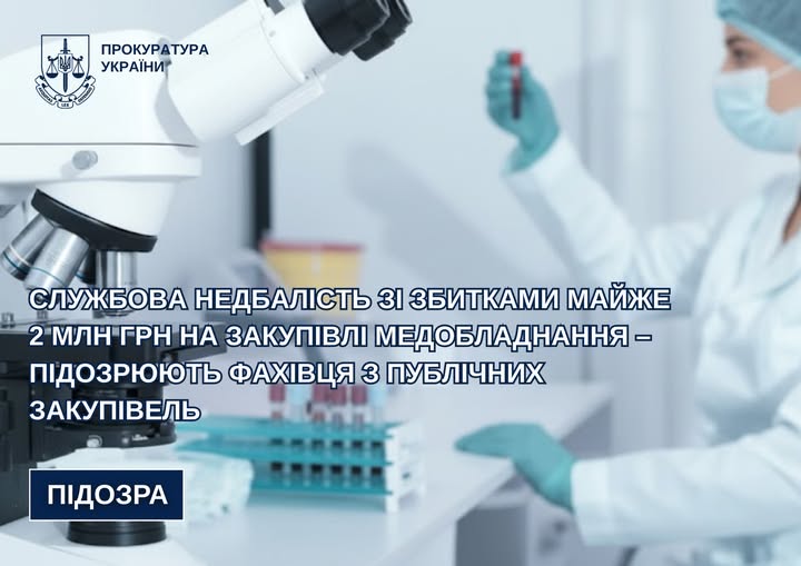 За процесуального керівництва прокурорів Черкаської окружної прокуратури повідомлено про підозру фахівцю з публічних закупівель однієї з лікарень міста Черкаси за фактом службової недбалості (ч. 2 ст. 367 КК України).