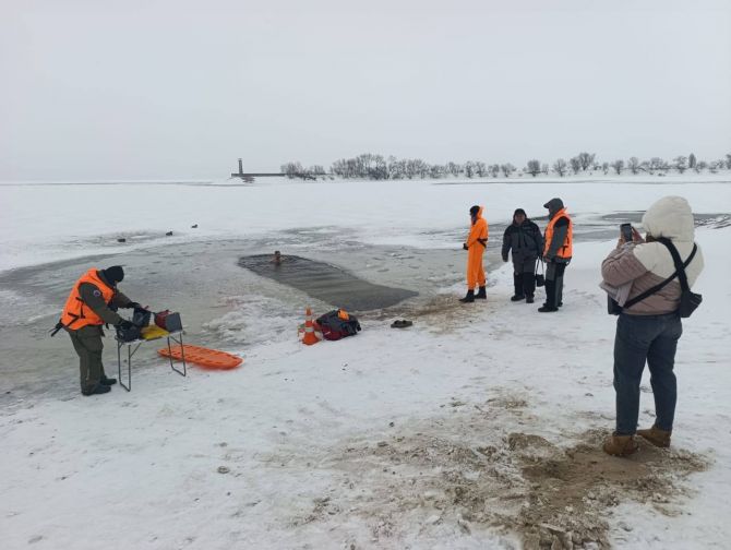 Фахівці комунальної установи «Черкаська міська комунальна аварійно-рятувальна служба» забезпечують безпеку громадян під час відзначення свята Водохреща поблизу водойм.