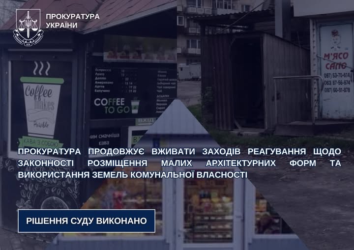 За виявленими порушеннями органи прокуратури вживають заходів реагування, у тому числі шляхом звернення до суду. Так, нещодавно забезпечено виконання двох судових рішень за позовами Смілянської окружної прокуратури про визнання протиправною бездіяльності Городищенської міської ради та її виконавчого комітету щодо невжиття заходів із відновлення благоустрою міста Городище Черкаської області шляхом демонтажу двох тимчасових споруд по вулиці Миру.