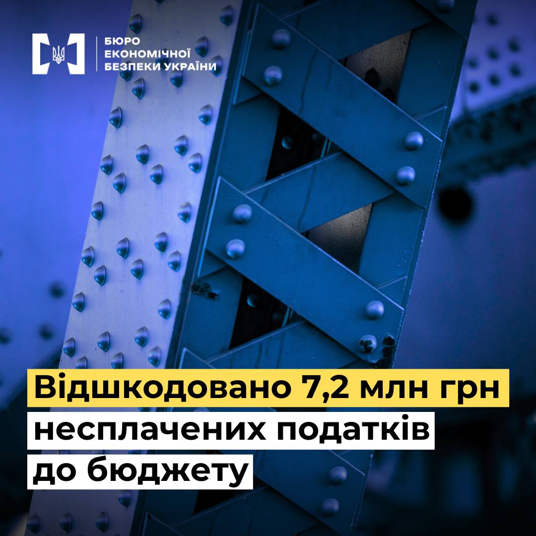 Детективи Територіального управління Бюро економічної безпеки у Київській області забезпечили відшкодування до державного бюджету 7,2 млн грн податкових збитків, завданих підприємством з виробництва металоконструкцій.