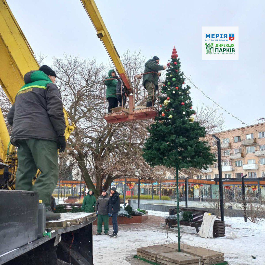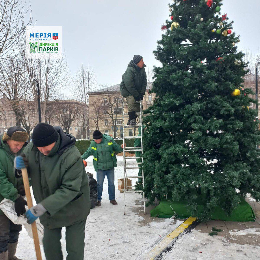 22 січня у сквері «Юність» у Черкасах комунальники провели демонтаж головних атрибутів зимових свят.