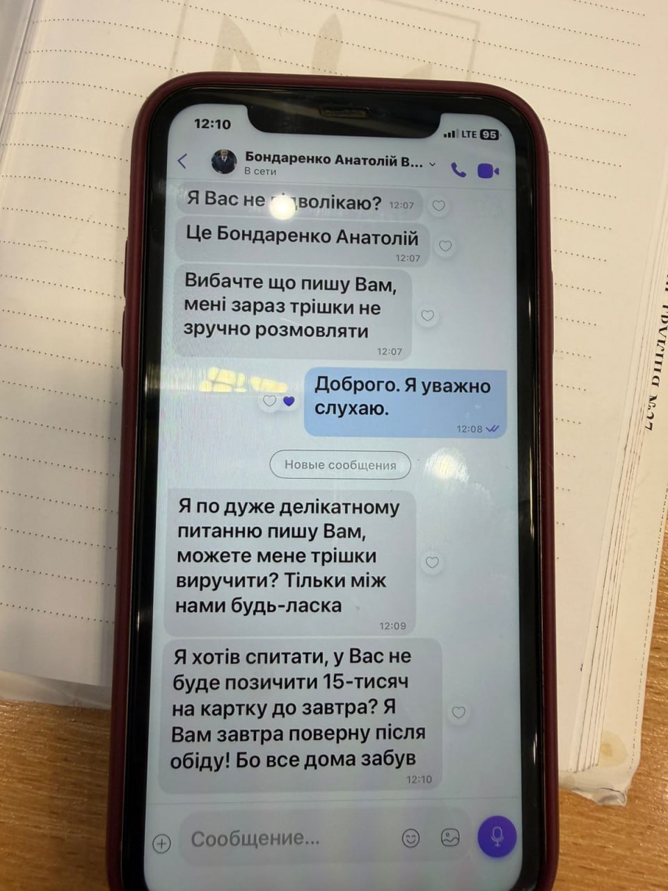 У месенджері від імені міського голови Черкас Анатолія Бондаренка масово розсилають повідомлення з проханням позичити або переказати кошти.
