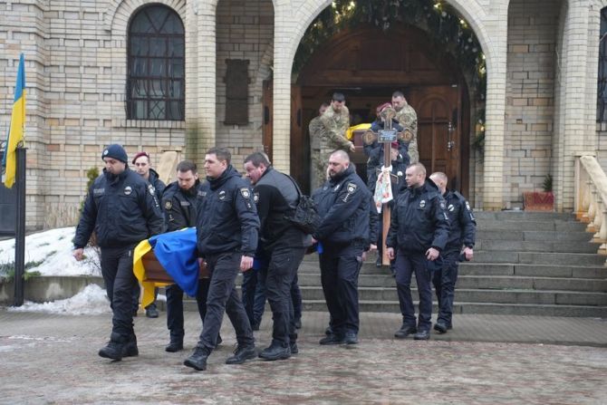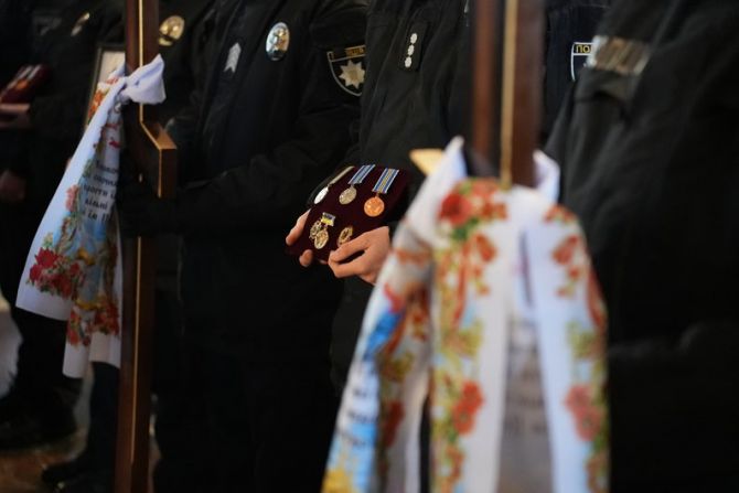 У Черкасах 29 січня у Свято-Михайлівському кафедральному гарнізонному соборі попрощалися із чотирма поліціянтами, які загинули під час затримання підозрюваного у замаху на вбивство.
