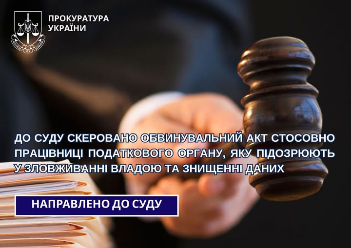 Під час досудового розслідування встановлено, що працівниця податкового органу, використовуючи особистий логін і пароль, без наявності правових підстав увійшла до інформаційно-комунікаційної системи Державної податкової служби та видалила два податкові повідомлення-рішення щодо сплати фізичною особою — підприємцем податку на нерухоме майно на загальну суму 500 тис. грн.
