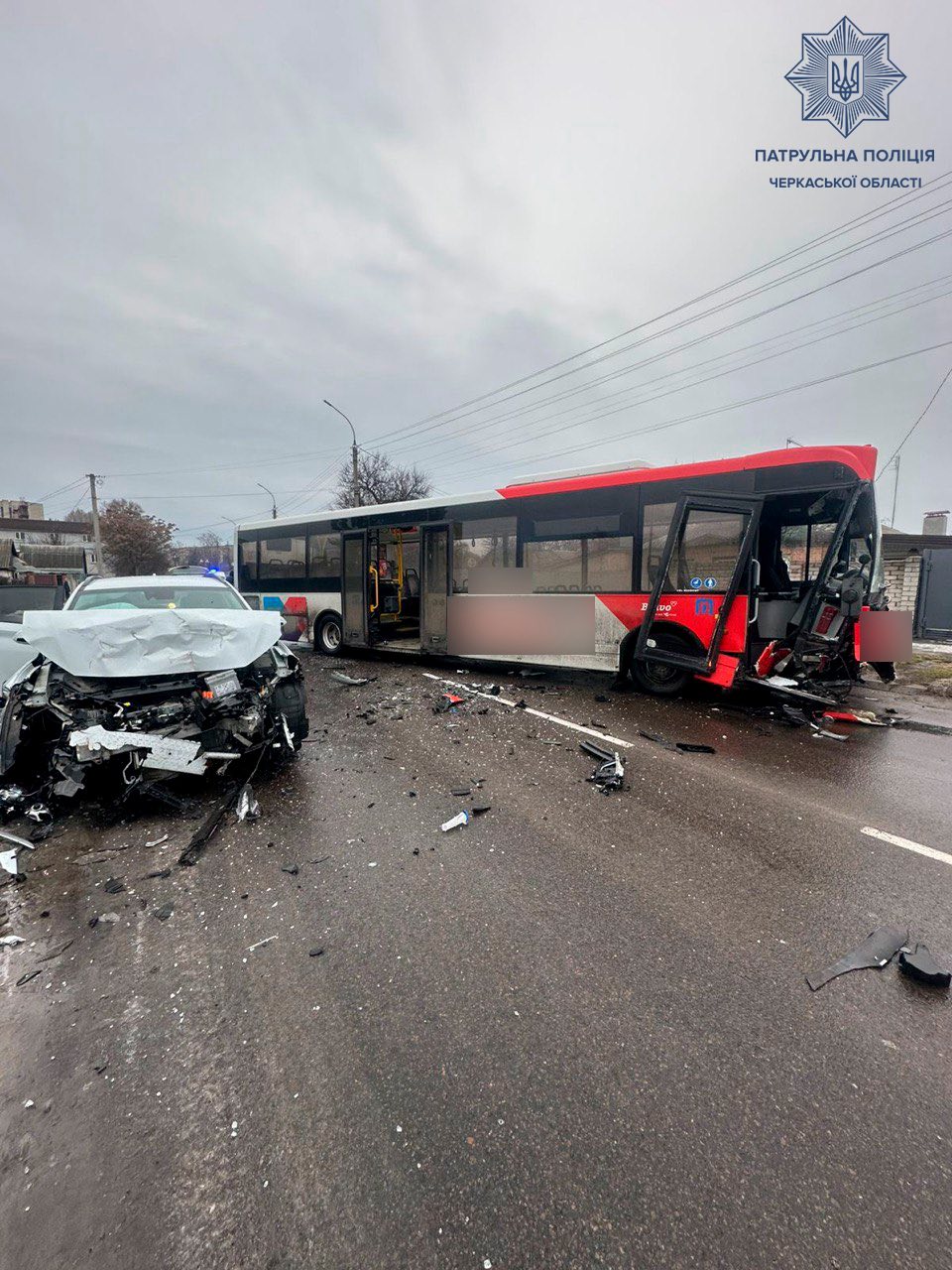 Там автомобіль Hyundai Kona зіштовхнувся з маршрутним транспортним засобом Ambassador 200, повідомляє пресслужба патрульної поліції Черкаської області.