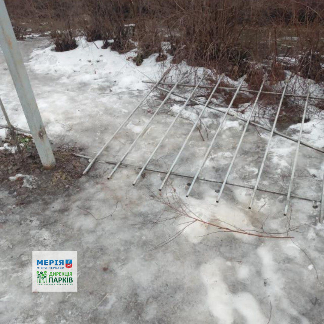 Як повідомили у КП «Дирекція парків», лише минулого четверга, 12 лютого, працівники підприємства відремонтували металеву огорожу та приварили одну з пошкоджених секцій. Однак уже 18 лютого під час чергового огляду фахівці виявили, що цю ж частину паркану знову відірвали та кинули під труби теплотраси.