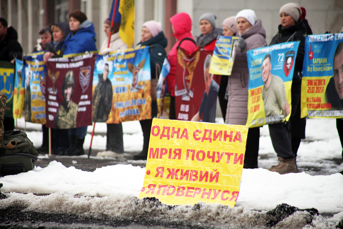 Щільний ранковий туман в останній день зими не завадив десяткам рідних і близьких військовополонених і зниклих безвісти Героїв-захисників зібратися в центрі Сміли на мирну акцію підтримки.