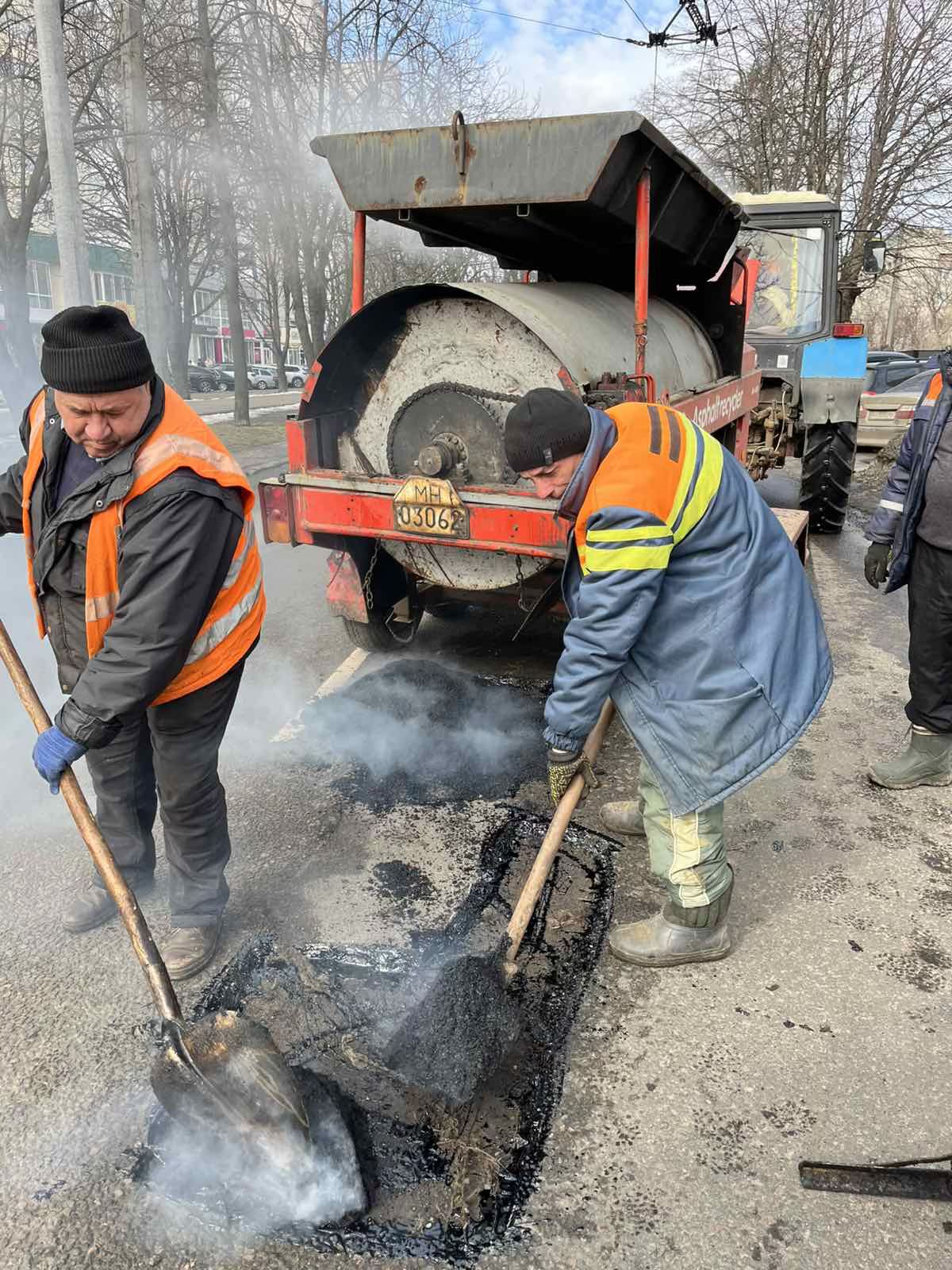4 березня у Черкасах на дорогах відбувався аварійно-ямковий ремонт асфальтобетонною сумішшю, виготовленою за допомогою рециклера.