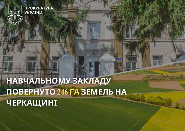 Робота з повернення земель навчальним закладам триває. У 2025 році за позовом прокуратури Черкащини освітній одній з освітніх установ уже повернуто земельну ділянку площею 14 га.