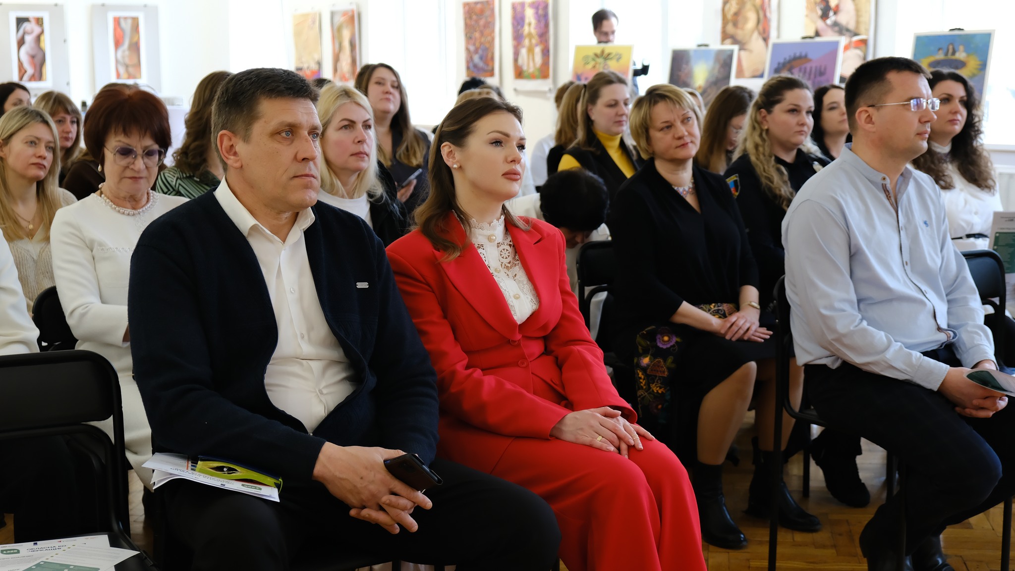 Символічним виміром зустрічі стала виставка 14 картин, створених посадовцями, дипломатами та людьми, які пережили війну. Черкаське полотно зображує жінку-матір у образі мотанки зі щитом і дитиною на руках — крізь руїни проростає лоза як символ відродження. «Картини надзвичайно глибокі, від них — мурашки по тілу. Мистецтво дозволяє передати те, що іноді неможливо сказати словами», — поділилася враженнями регіональна координаторка з прав людини Людмила Проценко.