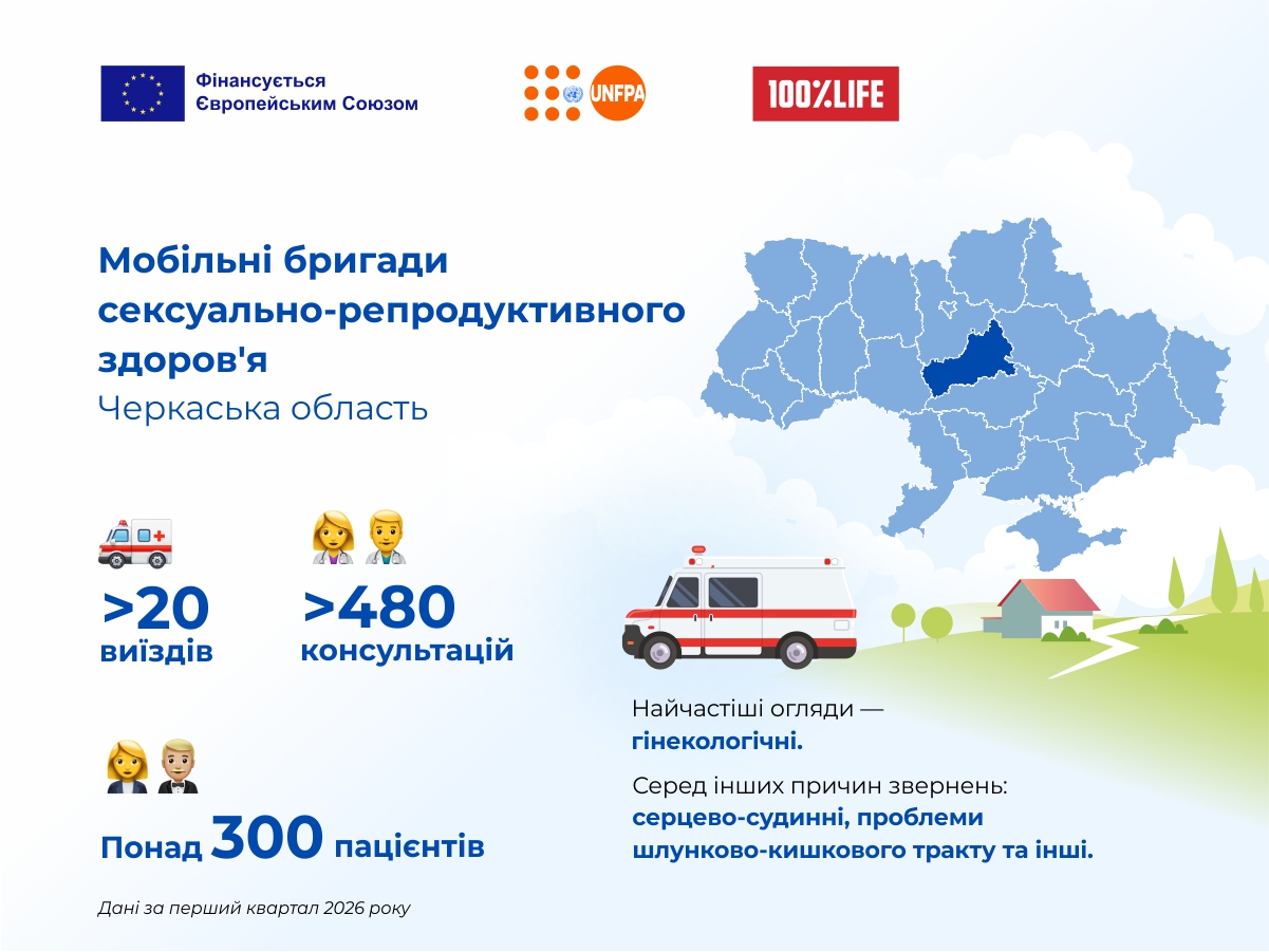 Лише за перші три місяці 2026 року бригада здійснила понад 20 виїздів та провела понад 450 консультацій. До складу команди входять фахівці КНП «Черкаська обласна лікарня Черкаської обласної ради»: