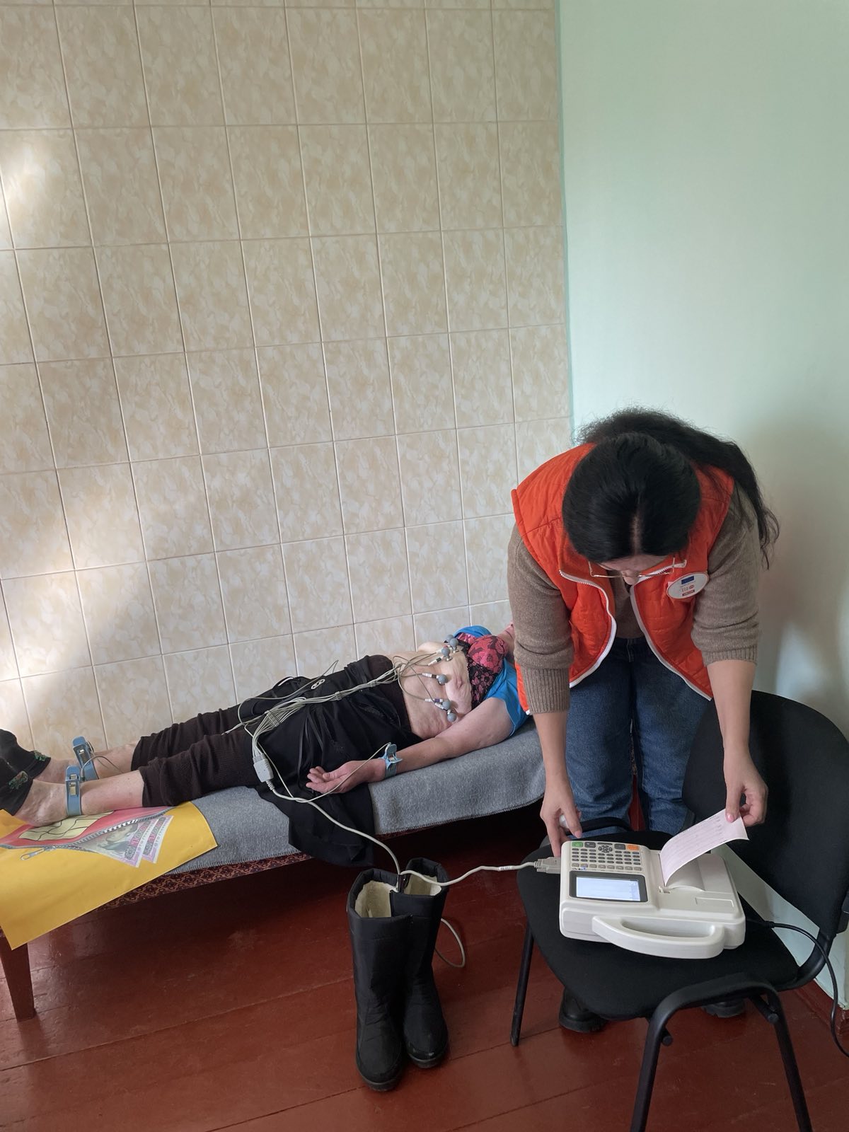 Серед пацієнтів того дня — жінка пенсійного віку після операції на серці. Лікарі приділили їй понад півтори години: провели консультацію, зробили ЕКГ, скоригували лікування. Медики працювали до останнього пацієнта.