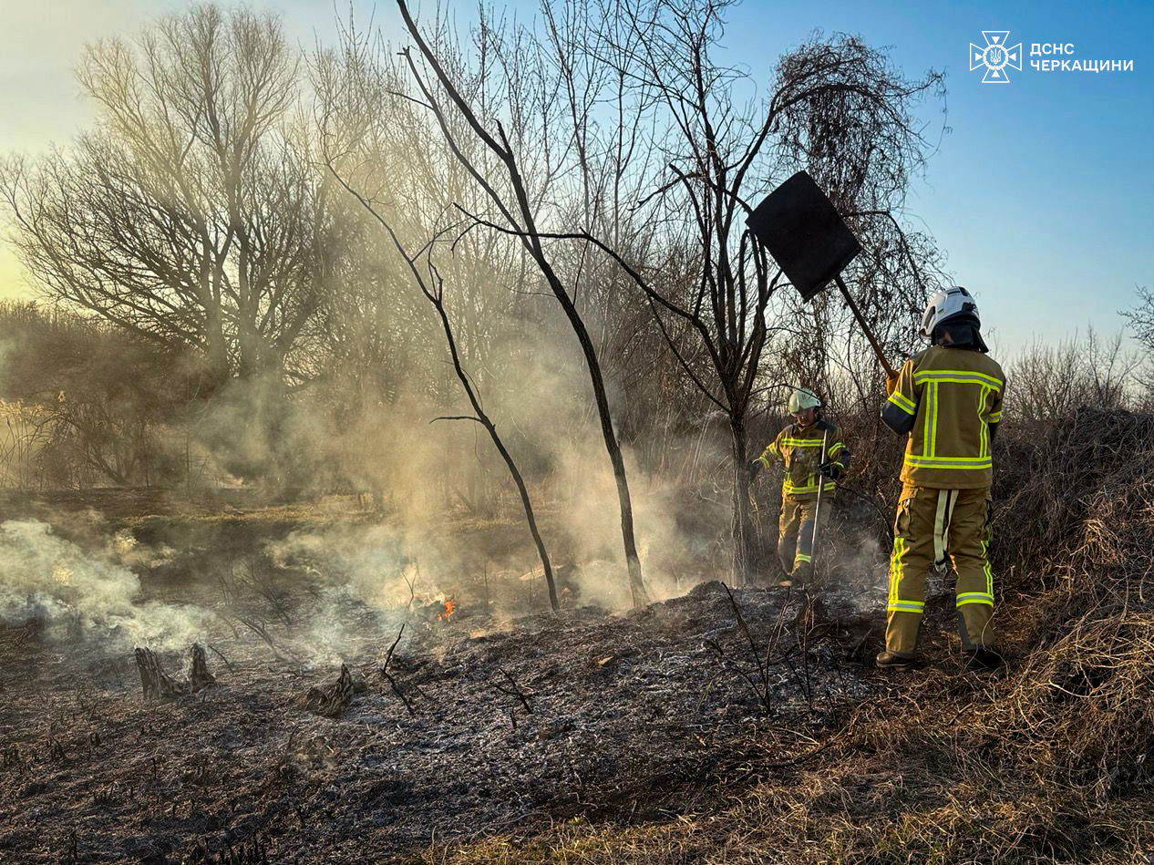 Вогонь охопив понад 5 гектарів території, знищуючи суху рослинність, стерню та очерет. Наймасштабніші пожежі зафіксовано в Уманському районі — на площах до 2,5 гектара, повідомляє пресслужба ГУ ДСНС у Черкаській області.