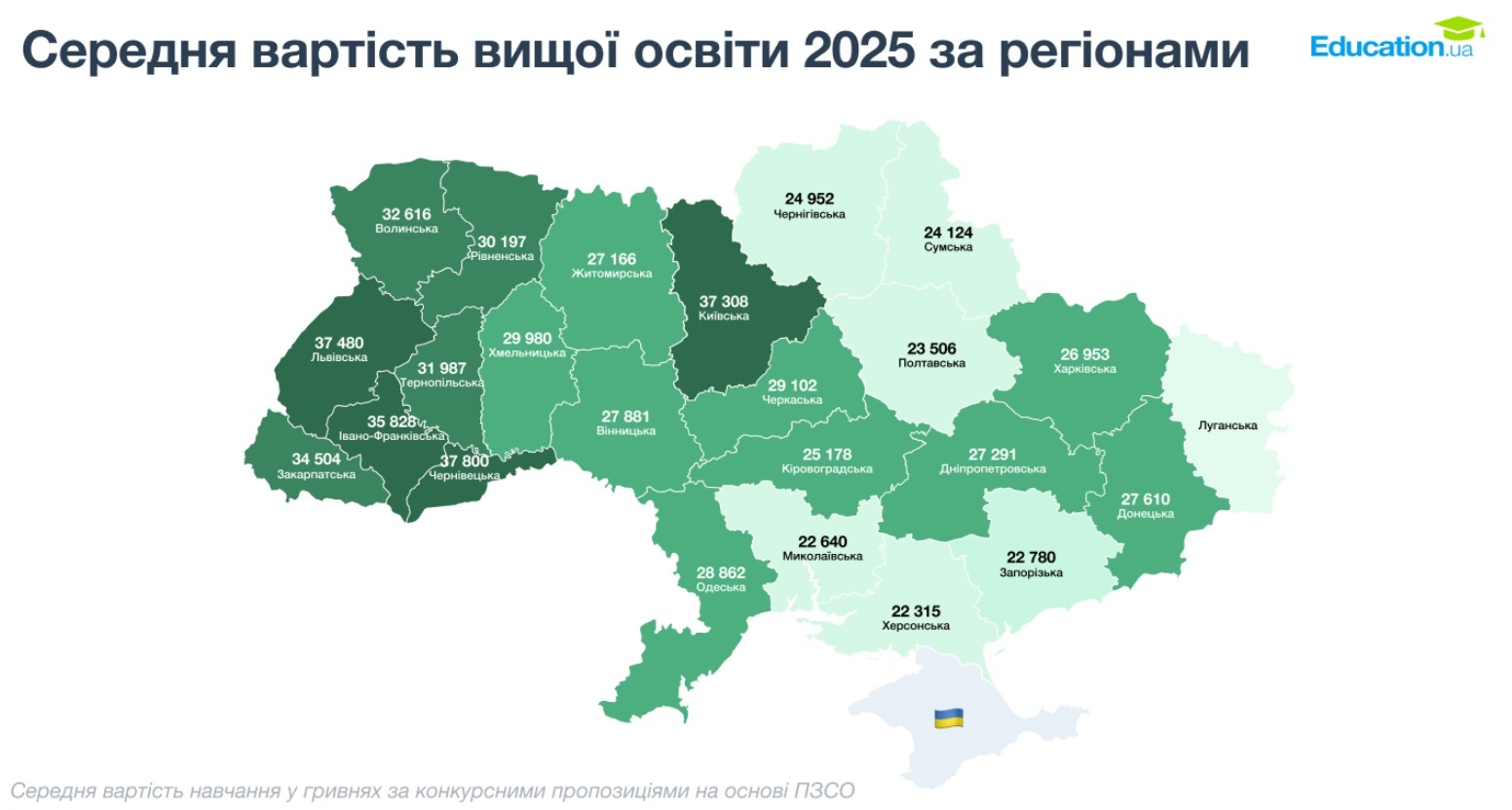 Загалом найдорожча вища освіта в Україні зосереджена в Києві та західних областях — зокрема у Чернівецькій, Львівській, Івано-Франківській та Закарпатській. Водночас ринок освіти пропонує варіанти на різний бюджет: у приватних вишах вартість контракту стартує від 100 тисяч гривень, тоді як у державних закладах можна знайти пропозиції до 20 тисяч гривень на рік.