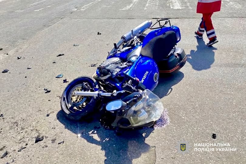 У результаті зіткнення 37-річний керманич мотоцикла та його 8-річна пасажирка отримали травми. Обох постраждалих госпіталізували до лікарні. Водій автівки не постраждав.