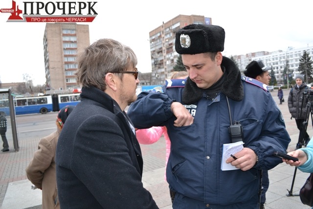За кілька хвилин після початку імпровізованої вистави до митця підійшли інспектори патрульної служби. Вони одразу охрестили його «провокатором» і почали випитувати особисті дані – прізвище ім’я, по батькові, домашню адресу тощо.