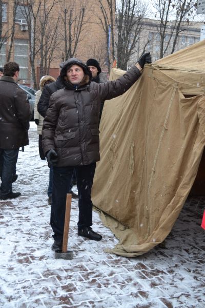 Міліція так і не дала представникам опозиції встановити намет на Театральному майдані, тож депутат Черкаської міськради запропонував піти і встановити його перед міськрадою. Адже в рішенні суду про заборону масових зібрань в Черкасах немає в переліку площі перед міськрадою.