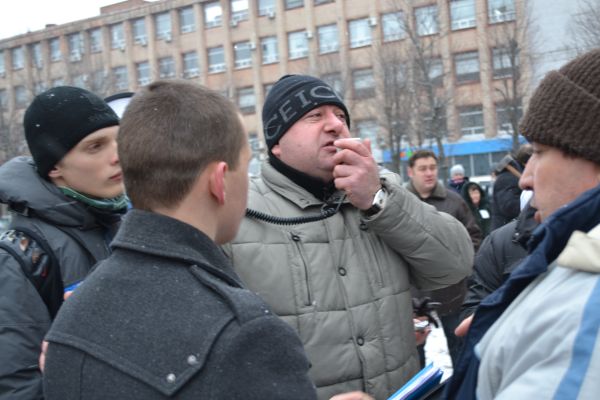 Опозиція стверджує, що це "права рука" Вадима Берези. Цей чоловік ховався від журналістів після того, як на Театральному майдані була здійснена провокація невідомими молодиками, які намагалися зчинити бійку і забрати в опозиціонерів намет