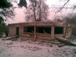 Окрім іншого, наразі триває підготовка до мурування печі. Щодня над відновленням хати Чумака працює бригада спеціалістів.