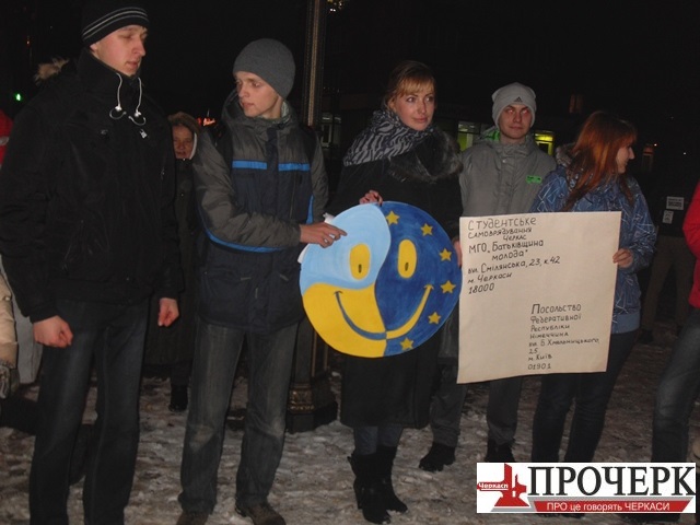Сьогодні о 16:00 близько 20 студентів черкаських вишів узяли участь в акції солідарності з київським Євромайданом.