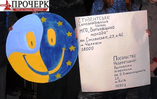 Студенти віднесли на пошту намальовані власноруч на плакаті сині смайлики подяки за підтримку європейських прагнень України, які відправлять посольству Німеччини в Києві. Також до смайликів вони доклали звернення до урядів країн-членів ЄС із вимогами застосувати санкції до української влади (вимагати від правоохоронних органів України припинити фабрикування кримінальних справ проти студентів та звільнити незаконно затриманих студентів; вимагати притягнути до кримінальної відповідальності організаторів та виконавців кривавого побоїща на Майдані Незалежності; вжити персональних санкцій до міністра внутрішніх справ України Віталія Захарченка; заборонити в'їзд до країн ЄС, США та Канади народним депутатам України від фракції Партії регіонів, спонсорам Партії регіонів, міністрам, іншим високопосадовцям Кабінету Міністрів України, працівникам Генпрокуратури, МВС, спецпідрозділів міліції, суддям).