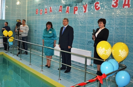 Під час зустрічі губернатор разом із дітьми перерізав символічну стрічку біля басейну.